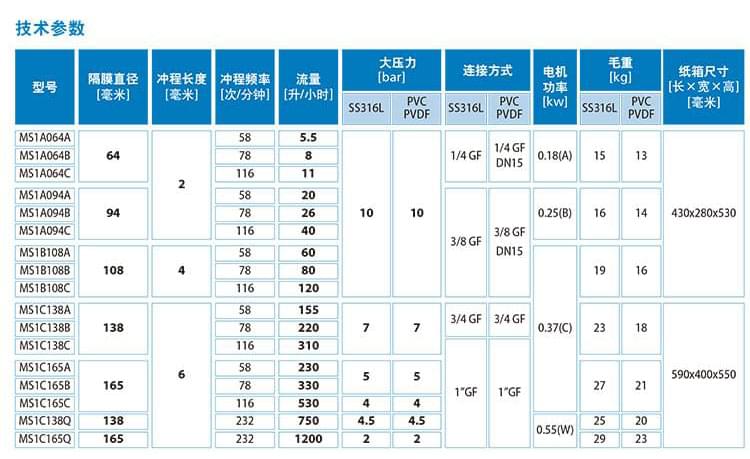 MS1系列隔膜計量泵特點