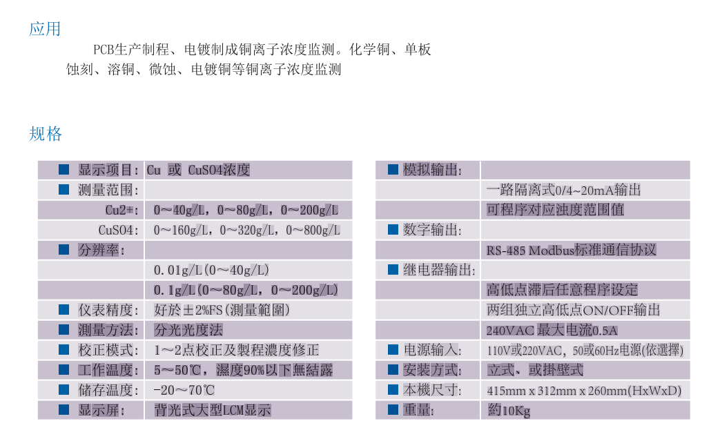 在線銅離子濃度監測儀 SCU-9100系列
