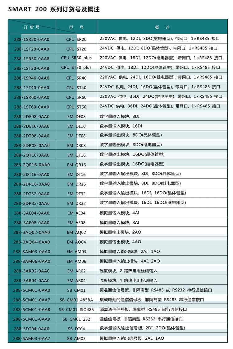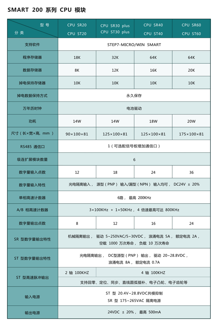 A7-200 SMART 系列 PLC 推出的新一代的可編程邏輯控制器,其緊湊的結構,豐富的機型,良好的 擴展、卓越的性能以及強大的指令, 可滿足不同行業,不同客戶、不同設備的中小規模系統的各種復雜的控制需求。