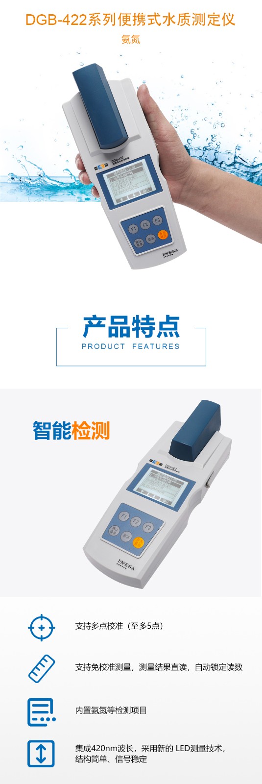 上海雷磁DGB-422便攜式水質測定儀免校準測量氨氮檢測儀測定儀