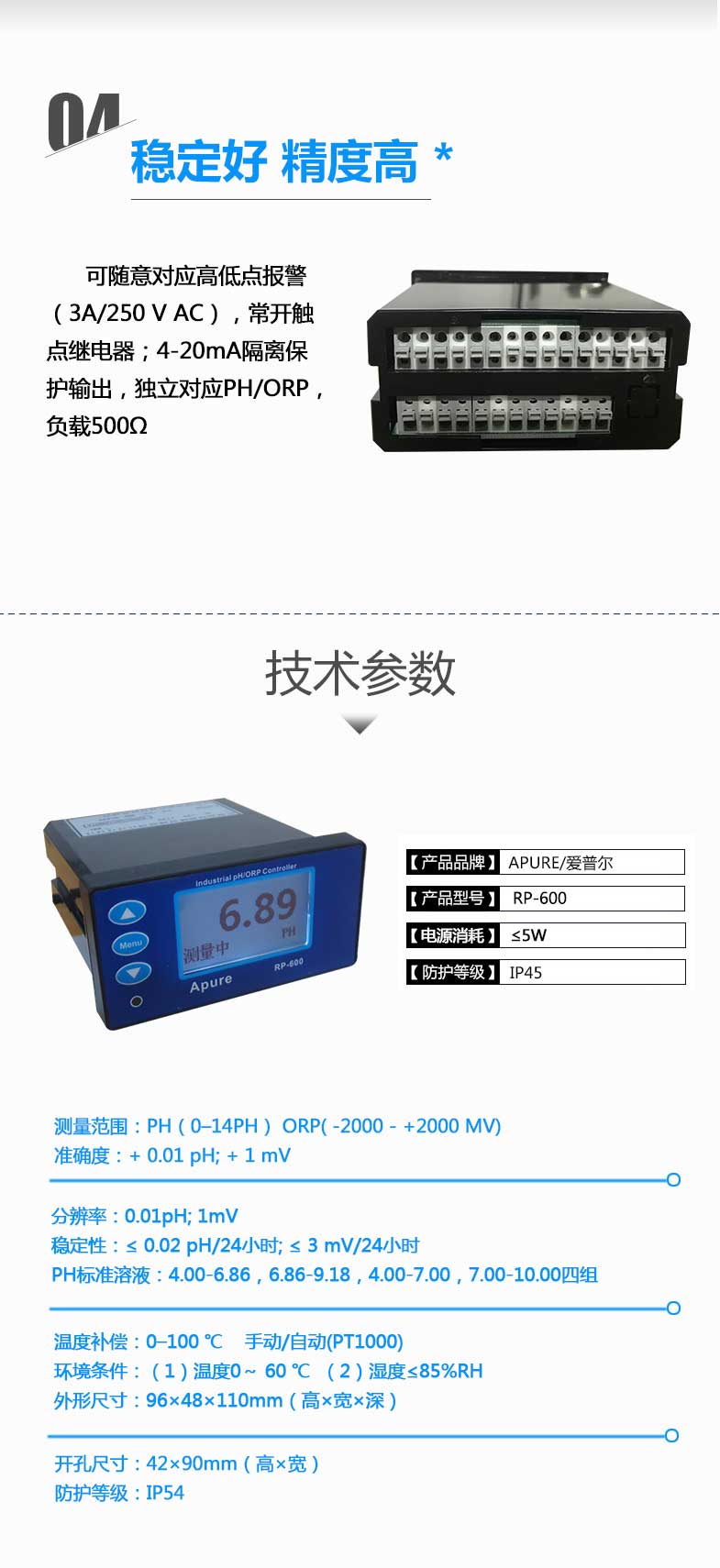Apure愛普爾RP-600簡易PH/ORP儀表控制器分析儀工業在線ph計