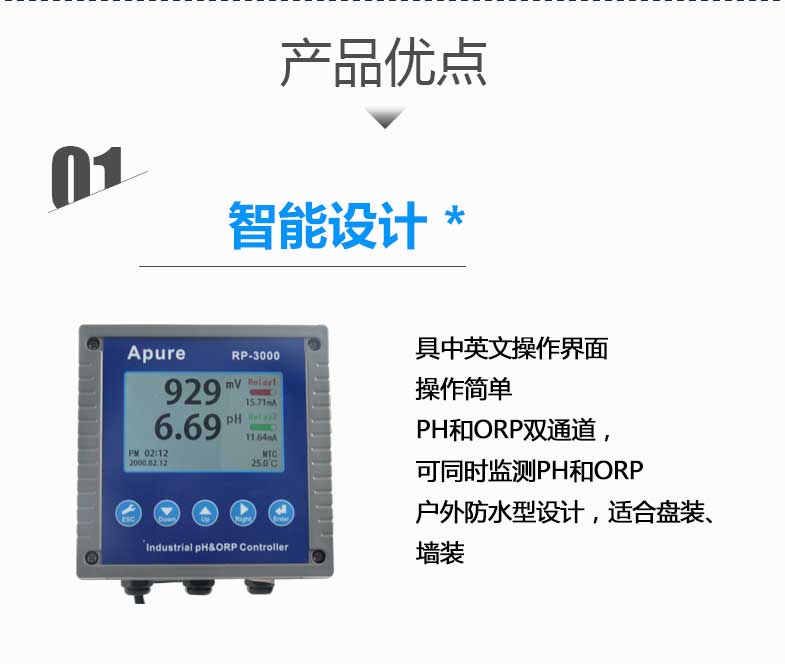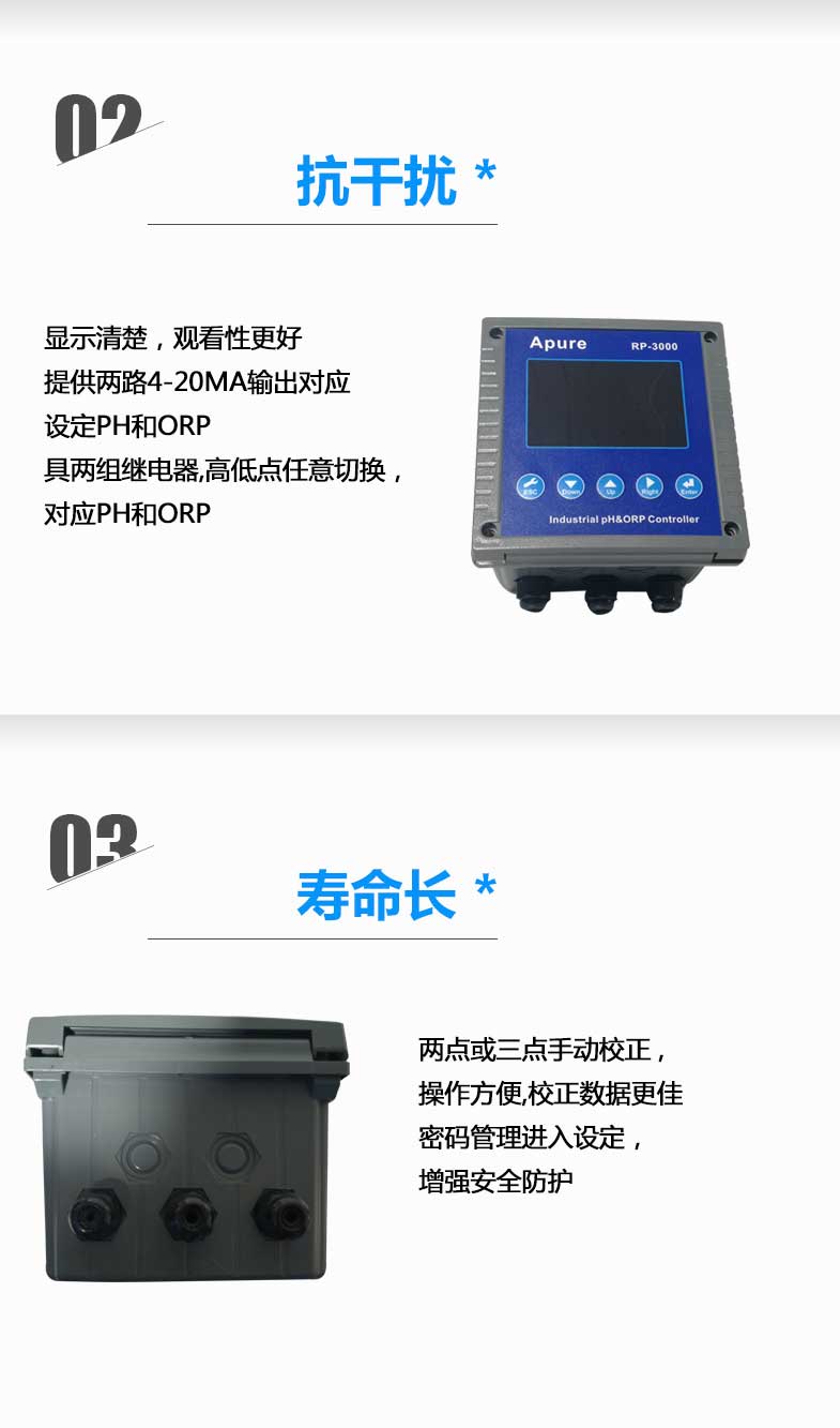 工業在線酸堿度計RP-3000 PH計測試儀 雙通道PH/ORP控制器愛普爾